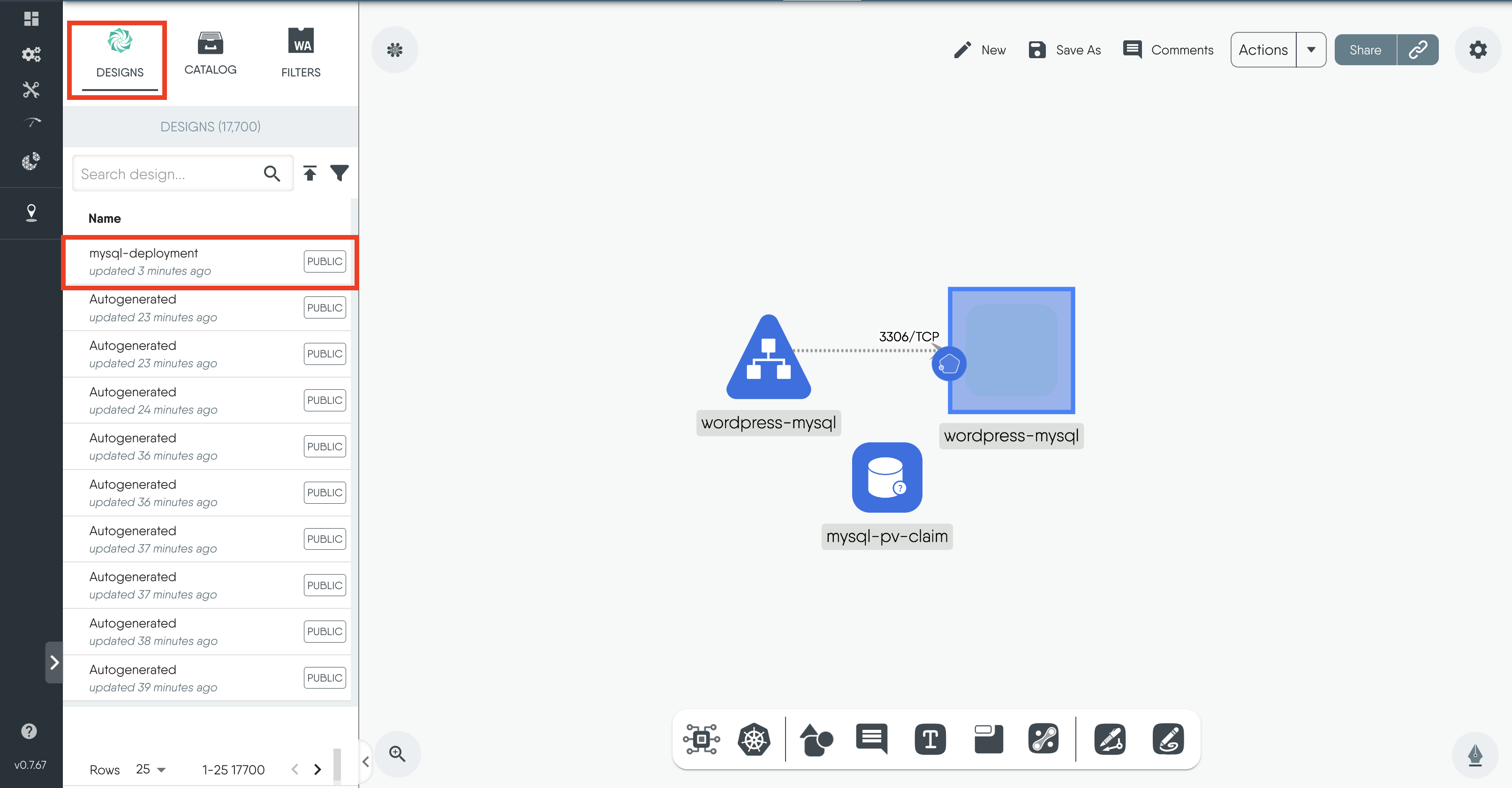 1. Under the “Designs” tab, you will see the successfully imported mysql-deployment design.